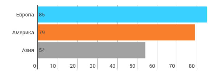 В 2014 г. плотность роботизации в обрабатывающей промышленности по регионам составила: 85 в Европе, 79 в Америке, 54 в Азии (рис. 3).