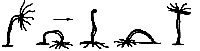 Слева направо: Гидра с мужскими гонадами, Гидра с женскими гонадами, Гидра во время почкования.