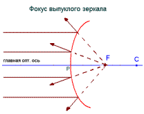 В случае выпуклого зеркала фокус f < 0, т. е. является мнимым.