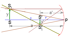 Замечу, что получение точечного изображения в зеркале возможно лишь при использовании параксиальных (приосевых) пучков лучей. Широкие пучки лучей приводят к таким же аберрациям, как и в линзах.