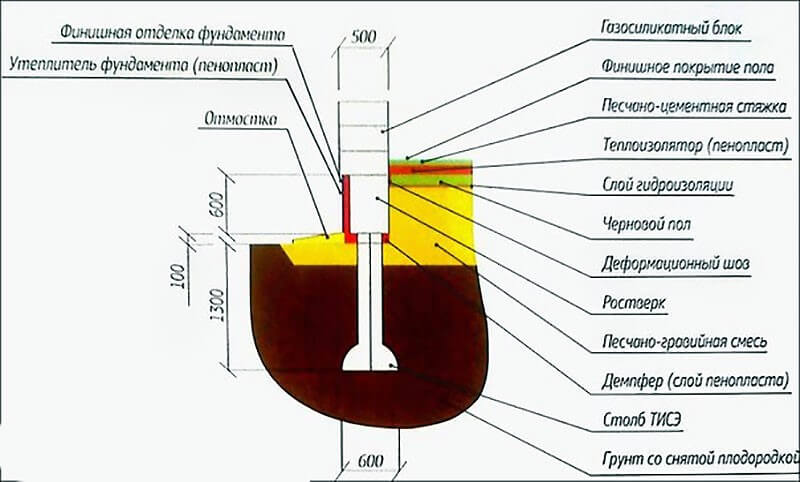 Низкий свайно-заглубленный фундамент может быть только с бетонным ростверком.